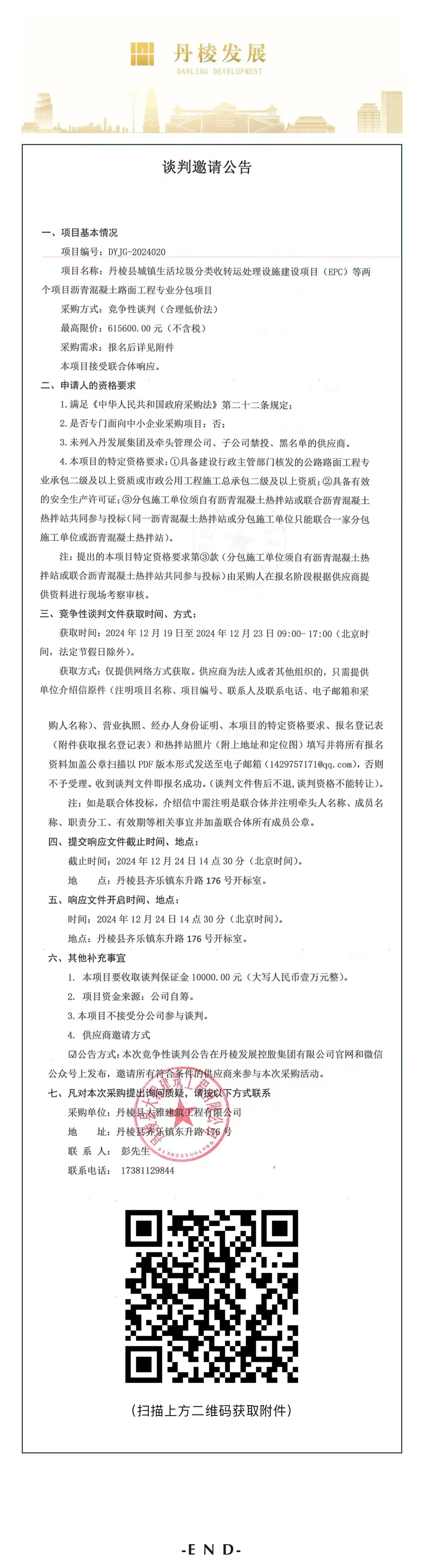丹棱縣城鎮(zhèn)生活垃圾分類收轉(zhuǎn)運(yùn)處理設(shè)施建設(shè)項(xiàng)目(EPC)等兩個(gè)項(xiàng)目瀝青混凝土路面工程專業(yè)分包項(xiàng)目談判邀請公告