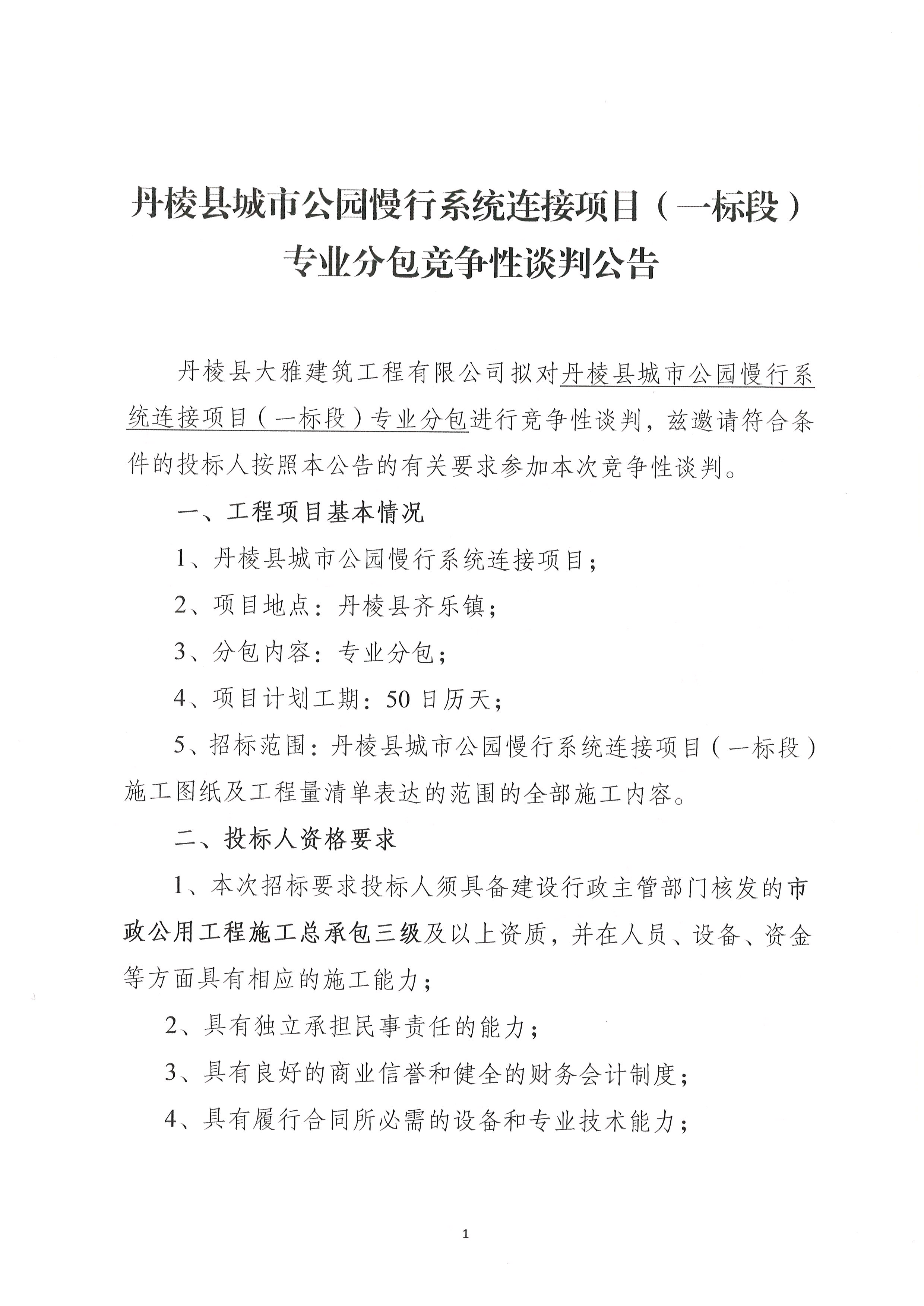 【大雅建筑公司】丹棱縣城市公園慢行系統(tǒng)連接項(xiàng)目(一標(biāo)段)專(zhuān)業(yè)分包競(jìng)爭(zhēng)性談判公告