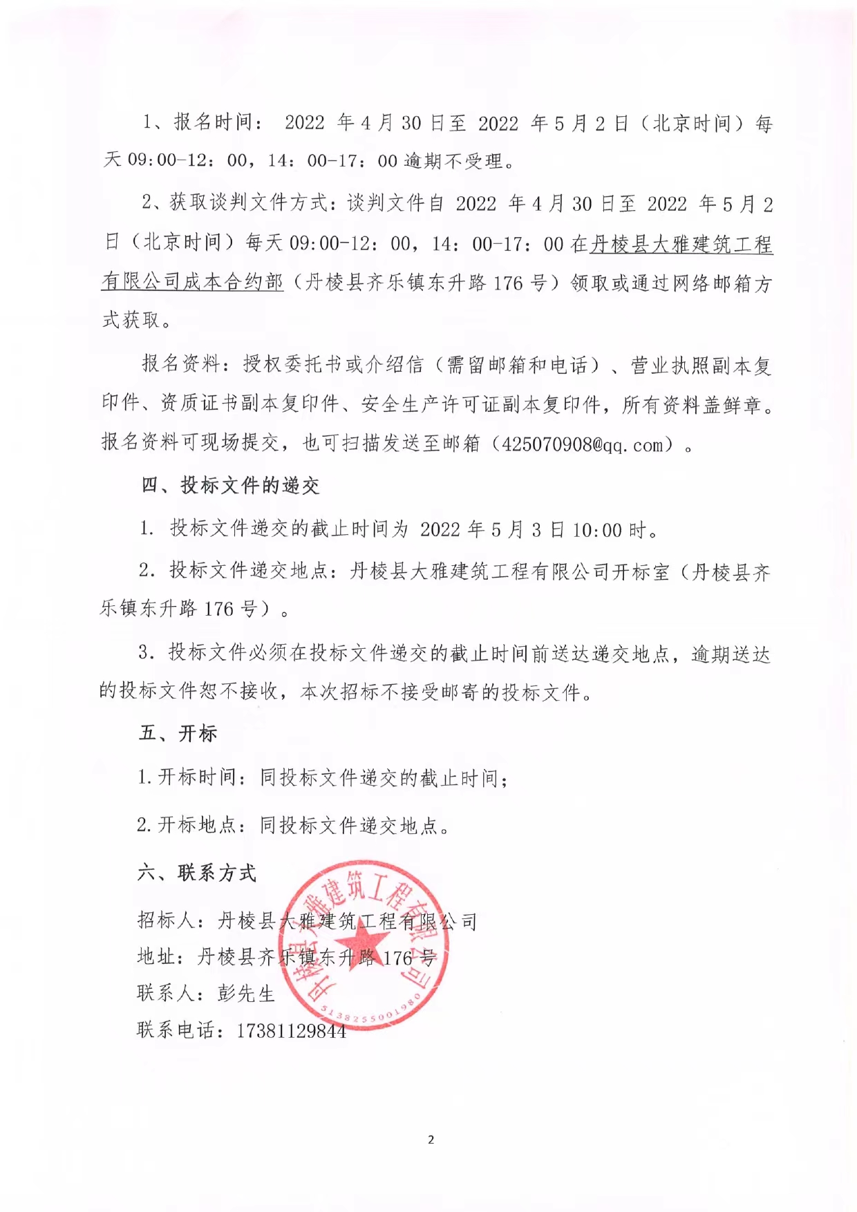 丹棱縣熊河碥片區(qū)市政基礎(chǔ)設(shè)施建設(shè)項目一期(城市雙修)設(shè)計施工總承包(EPC)路面水穩(wěn)工 程專業(yè)分包項目競爭性談判公告