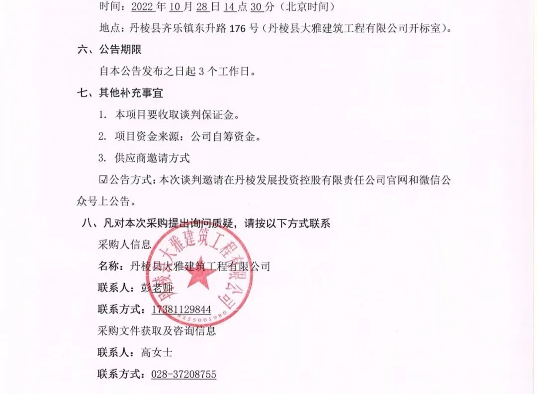 丹棱縣 2020 年、 2021 年、 2022 年保障性安居工程老舊小區(qū)燃氣等管道老化更新改造項目路面黑化工程專業(yè)分包項目談判邀請公告