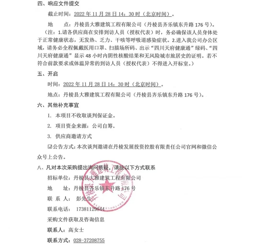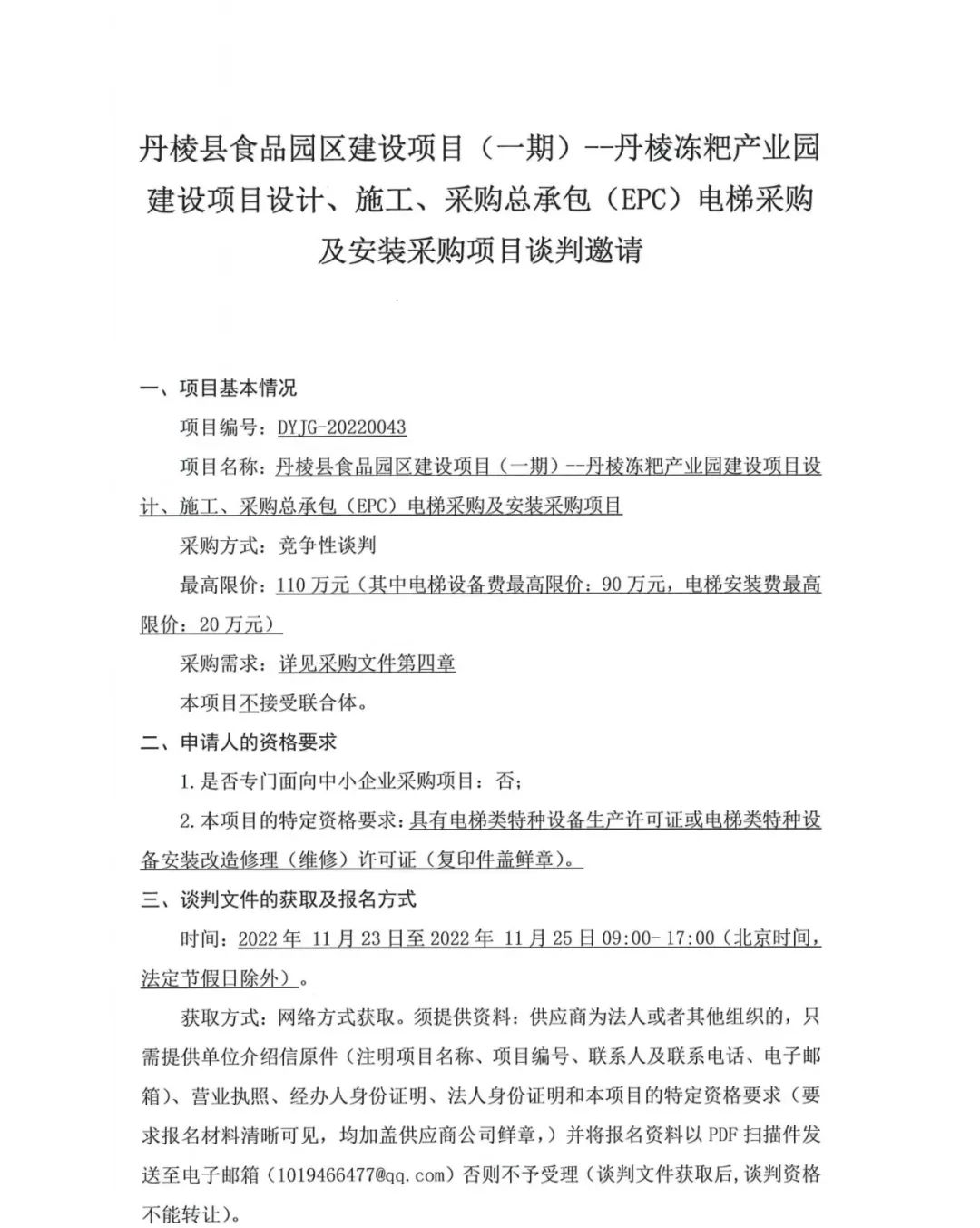 丹棱縣食品園區(qū)建設(shè)項(xiàng)目 (一期)--丹棱凍粑產(chǎn)業(yè)園建設(shè)項(xiàng)目設(shè)計(jì)、施工、采購總承包 (EPC) 電梯采購及安裝采購項(xiàng)目談判邀請(qǐng)公告