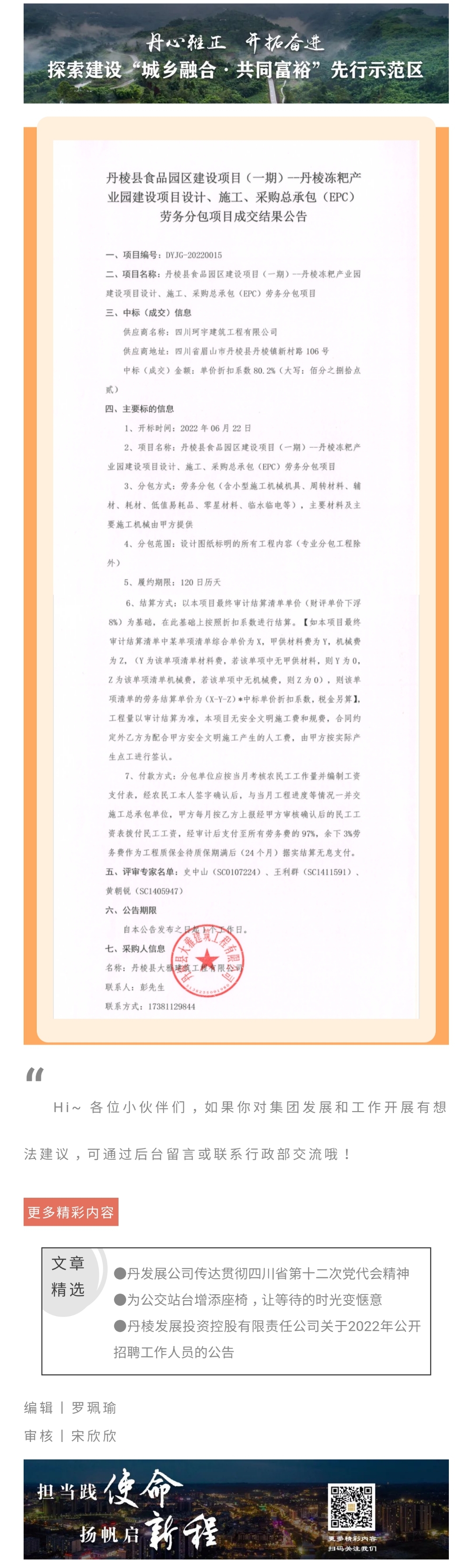 丹棱縣食品園區(qū)建設(shè)項目(一期)--丹棱凍粑產(chǎn)業(yè)園建設(shè)項目設(shè)計、施工、采購總承包(EPC)勞務(wù)分包項目成交結(jié)果公告