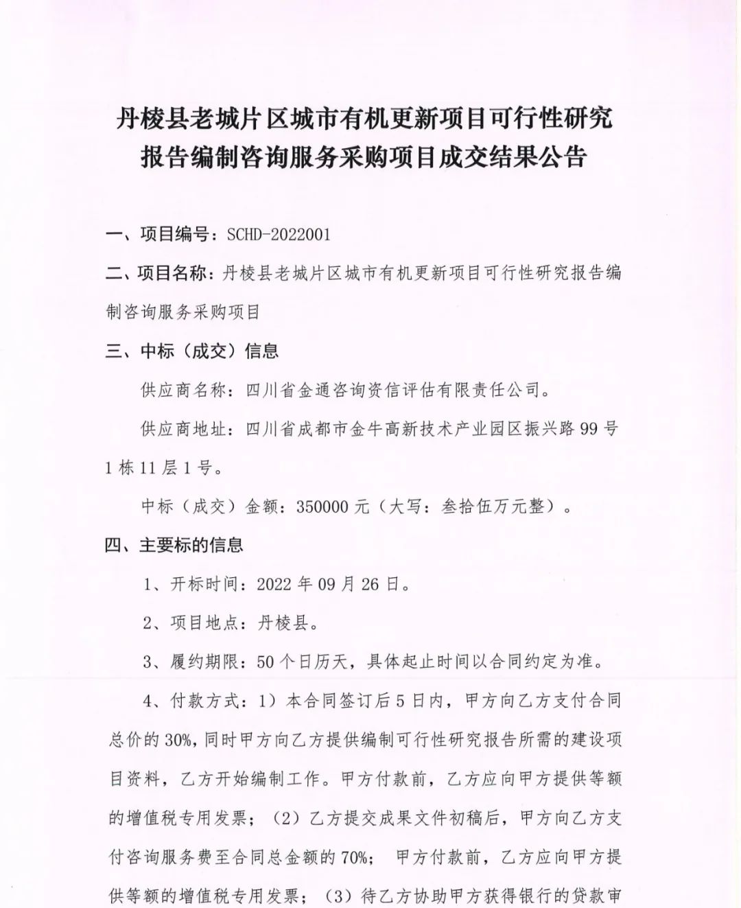 丹棱縣老城片區(qū)城市有機(jī)更新項(xiàng)目可行性研究報(bào)告編制咨詢(xún)服務(wù)采購(gòu)項(xiàng)目成交結(jié)果公告