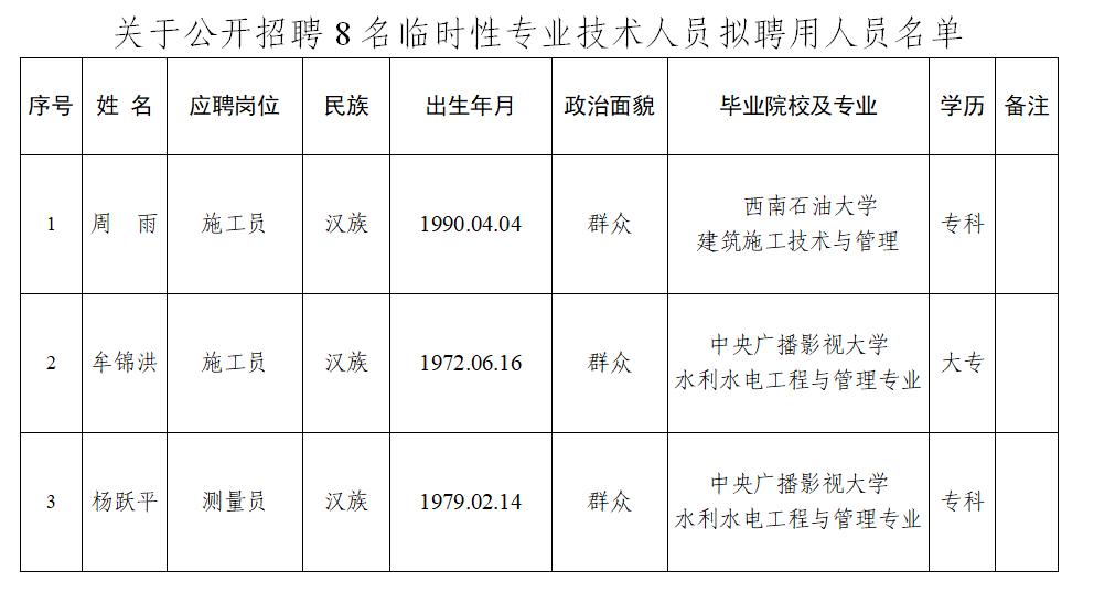 附件:關(guān)于公開招聘8名臨時(shí)性專業(yè)技術(shù)人員擬聘用人員名單