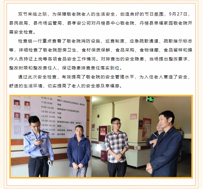 安全生產(chǎn)︱縣孝安公司開(kāi)展節(jié)前安全檢查,筑牢敬老院安全防線(xiàn)